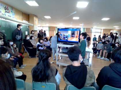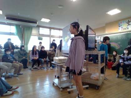 5年生「いざ最高学年〜中庭クリエイターから山室クリエイターへ〜」の発表の様子です。