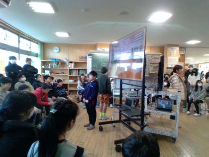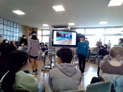 5年生「いざ最高学年〜中庭クリエイターから山室クリエイターへ〜」の発表の様子です。