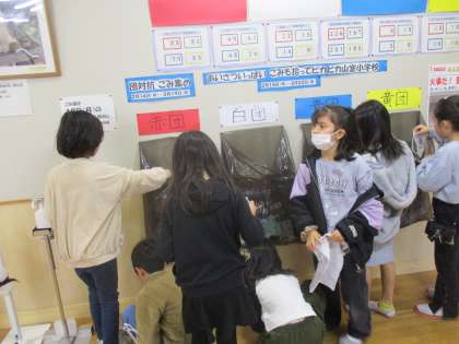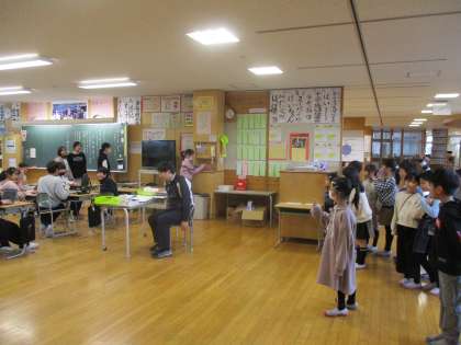 山室小学校では、「団対抗ごみ拾い」や「あいさついっぱい運動」の企画を行っています。2年生は、マイタイムに掃除をしたり、全校のクラスを回って挨拶をしたりしました。学校がきれいになって喜んでいる子供や挨拶がいっぱい返ってきて、うれしかったと話してくれる子供がいました。
