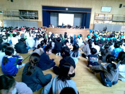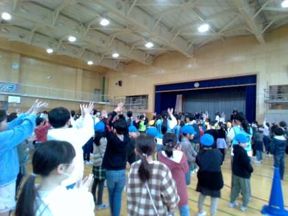 2月の全校児童集会を開きました。最後には集会を振り返って楽しかった感想や来年の抱負が聞かれました。