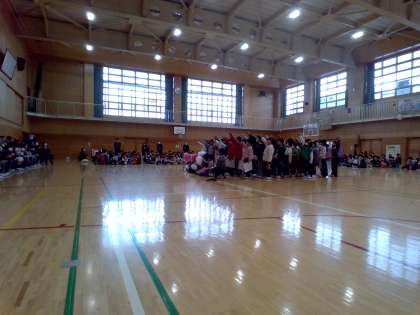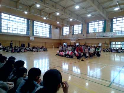 2年生は歌に合わせて卒業生へメッセージ。元気いっぱいに歌いました。