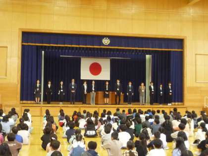 始業式では、校長先生のお話をよい姿勢でしっかりと聞き、みんなで元気よく校歌を歌いました。今年度も、一人一人が輝く蘭秀っ子を目指してがんばりましょう。
