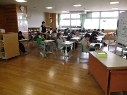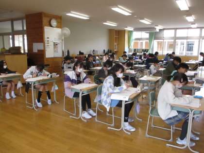 今日は、算数と社会科の学力調査です。真剣に取り組んでいます。