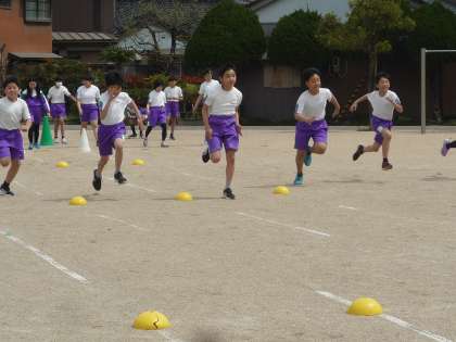 50m走のタイムを測定しました。ベストタイムを出せるように精一杯頑張りました。