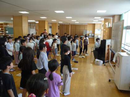 4年生になり、英語と音楽は新しい先生との授業になります。話を集中して聞き意気込んで取り組む姿が見られます。