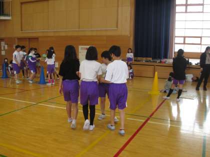 5年生が始まって最初の単元は体ほぐしの運動です。自分や仲間の心や体をよりよく変化させることができるよう、工夫しようを課題に、体ほぐしの運動に取り組みました。「自分や仲間の心をよりよくするには、プラスの言葉をかけることが大切だと思う。」という意見が出たり、自分たちの団の人が終わっていないことに気付き、近くでよりそう姿が見られたりしました。体ほぐしで学んだよりよい心や体をつくる工夫は、体育の全ての単元で大切なことだと思います。続けていき、体育のできた喜びや支え合う心地よさをたくさん感じていってほしいです。