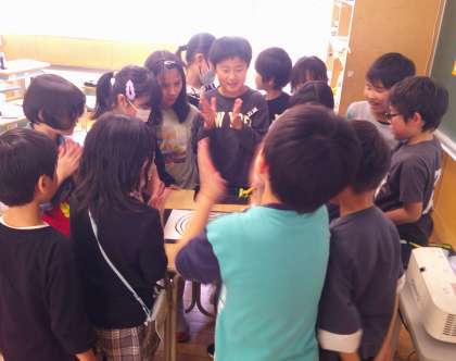 初めて墨をつけて、半紙に書きました。ドキドキしながら、おそるおそる墨を使う子ども達。どの子も真剣に取り組みました。