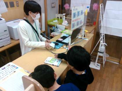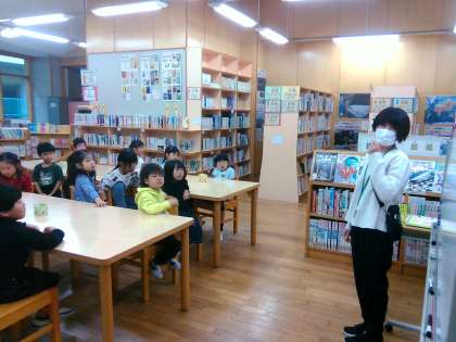 「地図の本を借りたいな」「怖い本もあるよ」「この本読んだことある」と、図書室でわくわく本を探す子供たちでした。