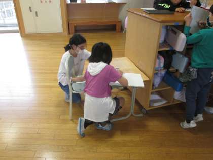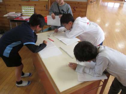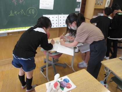 特別ゲストの先生に来てもらって、様々な形の立体の体積を求めました。一人で一生懸命解く姿、友達と考えながら解く姿、どちらも一生懸命に解く姿が印象的でした。はやく解き終わった人は、友達に教えたり、わかりやすい式で表すなど、時間いっぱい取り組む姿もすてきでした!