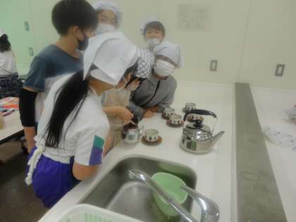 お茶の入れ方に気をつけながら、おいしいお茶になるよう、協力して取り組んでいました。