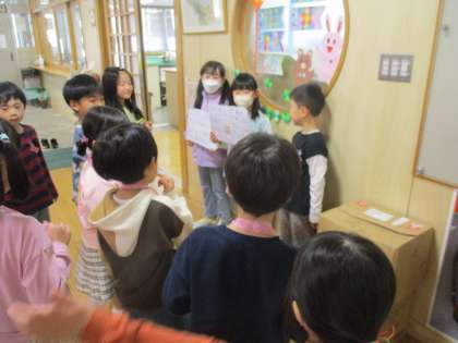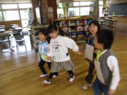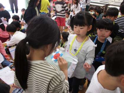 案内係が1年生を連れて、各教室を回りました。各教室では、紹介係が説明をしたりクイズをしたりしました。1年生の手を引いて案内したり、優しく声をかけたりする姿に成長を感じます。