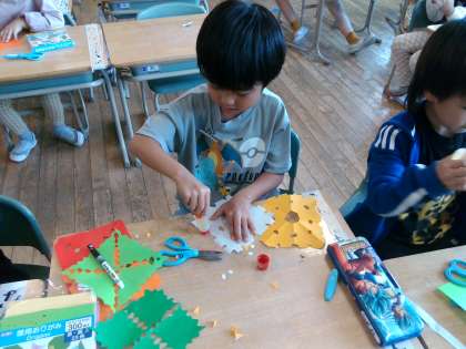 はさみで切ってどんな形になるのか、どんどん試しました。