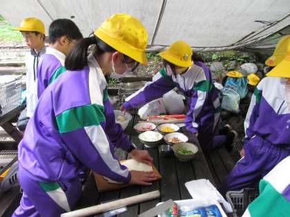 1日目の夜はピザを作りました。ピザ担当とかまど担当に分かれ、協力して活動できました。