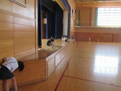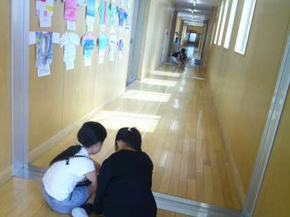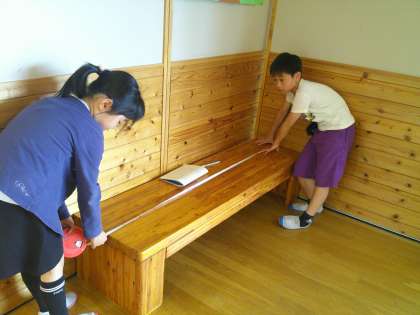 算数では巻き尺を使って長さを測りました。普段使用している廊下や体育館の長さを友達と協力して測ることができました。