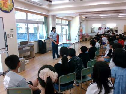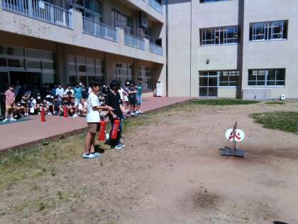 消防署の方々から、発火の多い家の特徴や発火の原因を聞き、防災への意識を高めました。また、消火器の使い方を学び、実際に消火器で火を消す体験をしました。