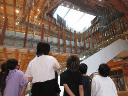 富山キラリへ校外学習へ行きました。ガラス美術館では、様々なガラス作品を鑑賞しました。ユニークな形や色に子供たちは、目を輝かせていました。また、感想を伝え合い、それぞれの作品のよさを考えました。見て、感じて、伝え合う有意義な鑑賞となりました。市立図書館では、普段入れない書庫を見学しました。見たことない量の本にびっくりしていました。