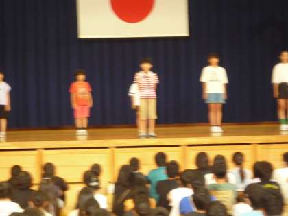 7月24日に1学期終業式がありました。2年生と6年生の代表児童6名が、1学期の振り返りを自信をもって発表しました。