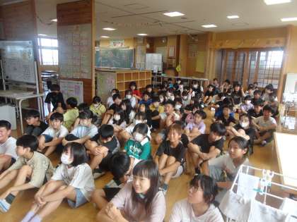 各学級で夏休みの出来事をお題にフルーツバスケットをしたり、ドッジボールをしたりと、久しぶりに会った友達と楽しそうに過ごしていました。