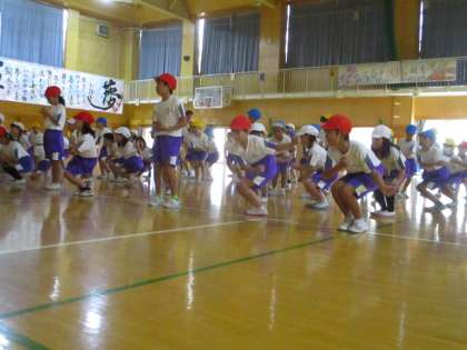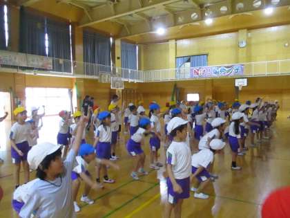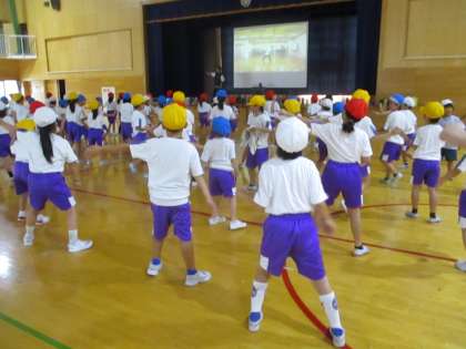 運動会に向けて、練習が始まっています。「ダンシング玉入れ」のダンスを練習しました。