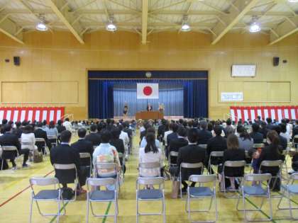 新型コロナウィルス感染拡大防止のため、十分に座席の間隔を空け、また、マスク着用の入学式となりました。しかし、入学生や保護者の方々、来賓の方々、そして、教職員のマスクの下には満面の笑みがありました。
