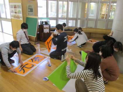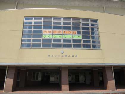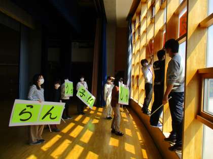 さらに、本日、体育館の窓に、らんしゅうっ子のみなさんへのメッセージをかかげました。「元気に会おうね らんしゅうっ子!!」先生たちの思いは1つです。