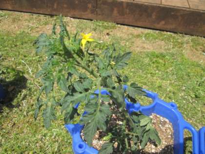 生活科の学習で、ミニトマトを育てますよ。だんだん花が咲きはじめてきました。ぐんぐん育っていますよ。