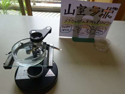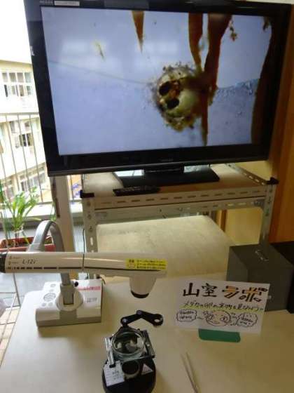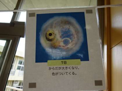5年生の育てているメダカ。卵の中で成長していく様子が、リアルタイムで観察できます。