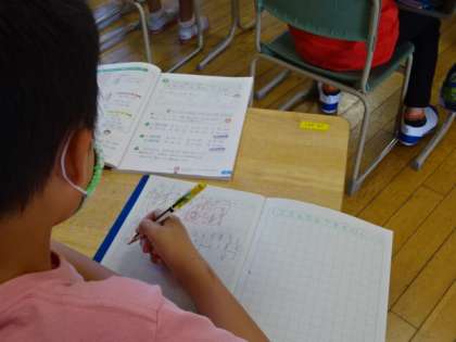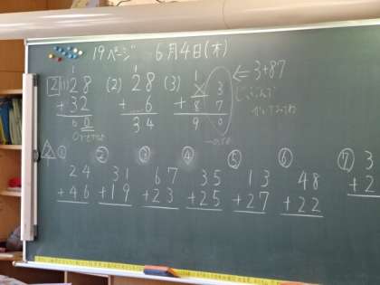 二けたの足し算の筆算をがんばっています。「休みの間にやったよ」と言う声も聞かれました。