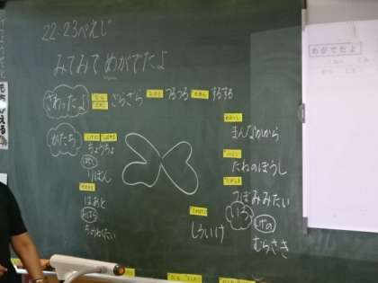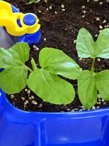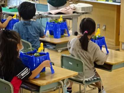 アサガオの芽が出ました。早速、みんなでじっくり観察して、見付けたことを発表しました。形や触ってみた様子等、たくさんのことに気付いてました。