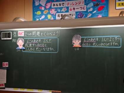 「2つの問題をくらべよう」似ているようで違っているね。それぞれの問題を図で表して考えてみよう。