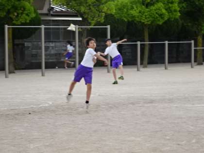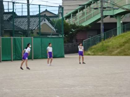 雨が降る前に、グラウンドでソフトボール投げを行いました。何m投げられるかな?