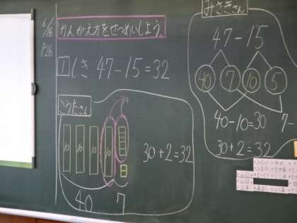 「考え方を説明しよう」同じひき算でも、考え方が違うね。それぞれの考え方を説明できるかな?