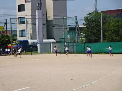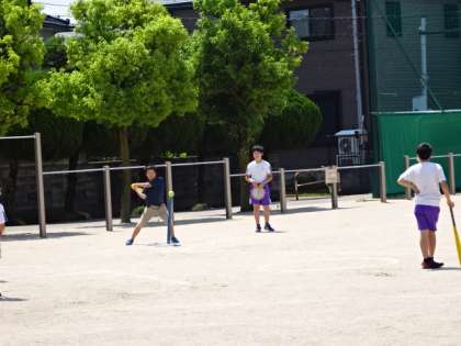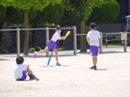 オリジナルルールを決めて、Tボールをしています。全員参加で、楽しそうです。
