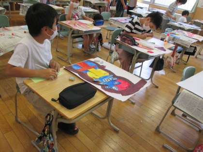 図画工作科では、この世に1つしかない「まぼろしの花」を作っています。