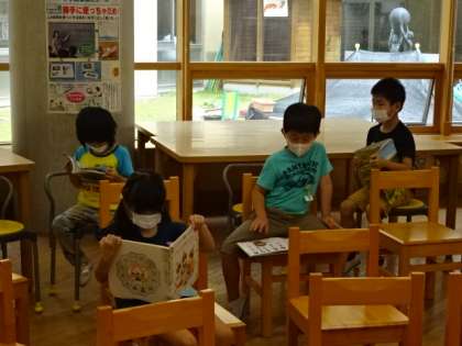 図書室の利用の仕方、本の借り方にも慣れてきました。進んで興味のある本を探して、お気に入りの本をかりるとうれしそうにしていました。
