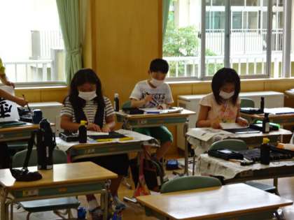 今日の文字は「雲」でした。書く場所を選んで練習しています。