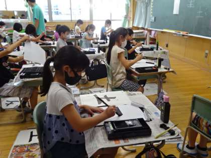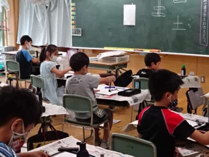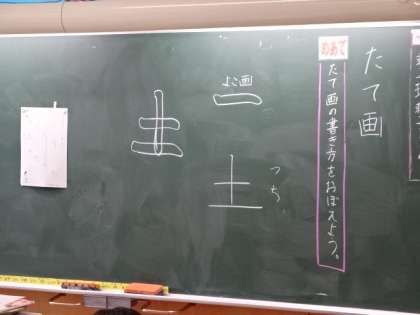3年生の書写は、「土」という文字を書きます。よこ画とたて画、しっかり丁寧に書いています。