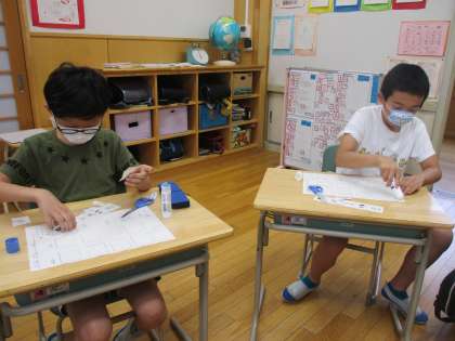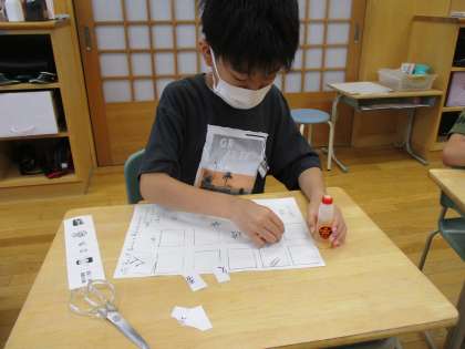 今日の国語の時間は、「漢字パズル」を使って学習しました。紙を、はさみで切ったりのりで貼ったりするなど、手を動かしながら集中して漢字を学習しました。