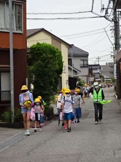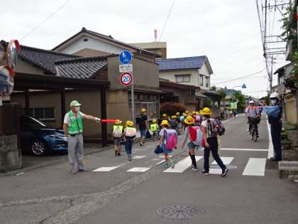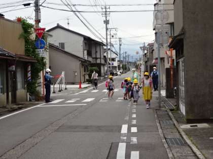 今日は曇っていて、比較的涼しいです。今日も警察の方が、子供たちの登校の様子を見守ってくださっています。