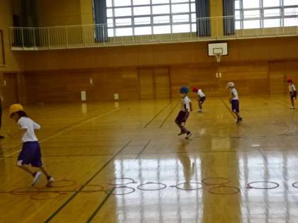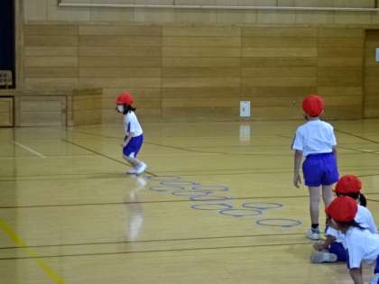 今日は体育館で体を動かしています。リズムよく体を動かしているのは誰かな?