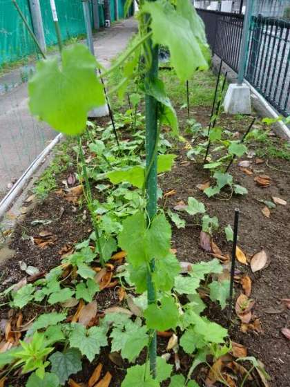学校再開から1か月がたち、7月に入りました。アジサイの花はよりきれいに、ヘチマやサツマイモの苗も生長してきました。元気よく活動して、湿気を吹き飛ばしていきたいものです。