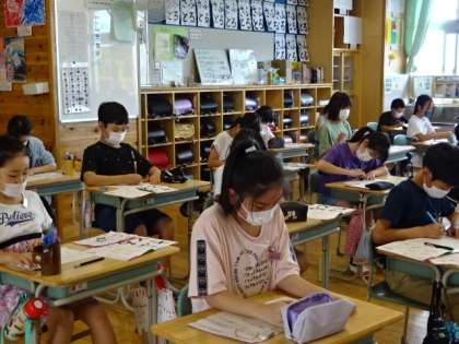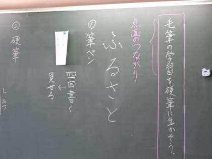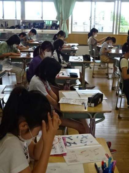 今日は硬筆です。毛筆の学習を硬筆に生かして書く練習をしています。