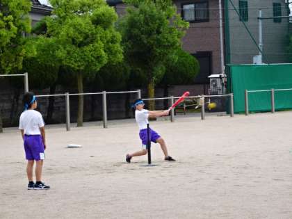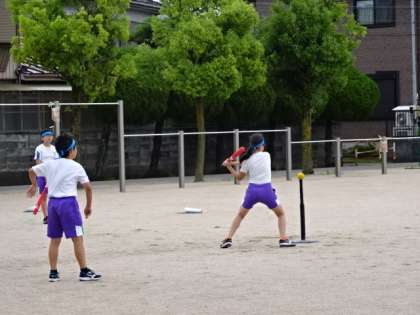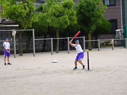 Tボールにだんだん慣れてきて、バットスイングも様になってきました。ナイスバッティング!