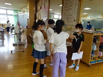 福祉について調べたことをグループで発表し合っています。分かりやすく伝えることができたかな。