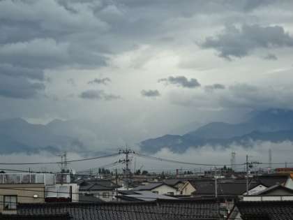 昼前は雨が小康状態でしたが、雨雲があちこちにかかっています。午後からは、また雨模様の予報が出ています。あまり降らないでと祈るばかりです。