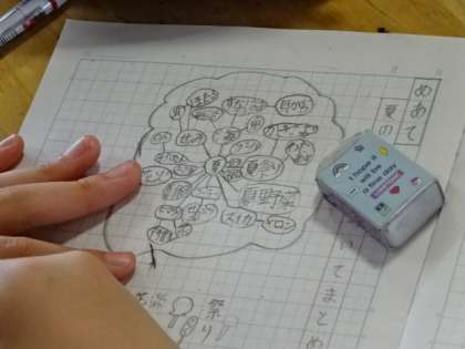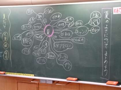 「夏のよさについてまとめよう」ということで、ウェビングの手法で、様々な面から夏のよさについて考えています。