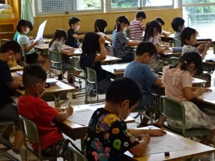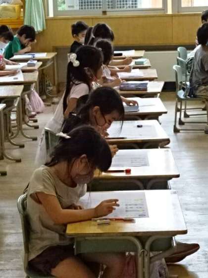 テストの時間です。みんながんばって取り組んでいます。がんばれ!