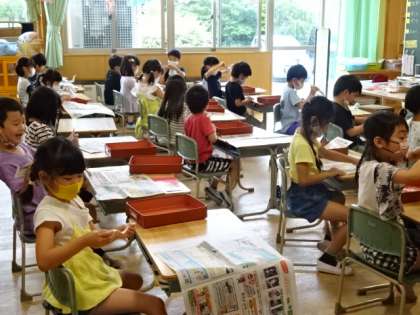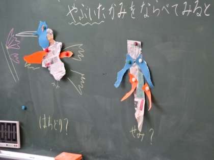 「やぶいたかたちからうまれたよ」紙を破るとおもしろい形が生まれてくるね。