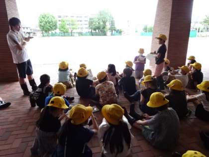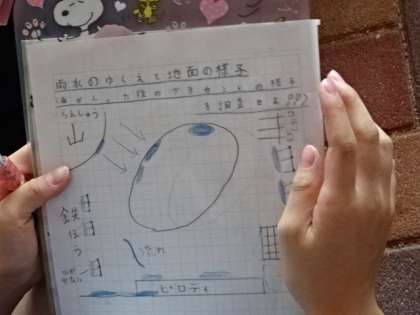 降った雨の行方は?実際にグラウンドに出て観察してみました。この後、雨水はどこへ行くの?