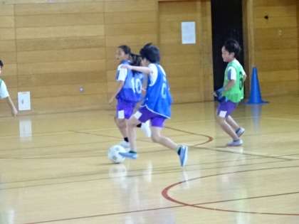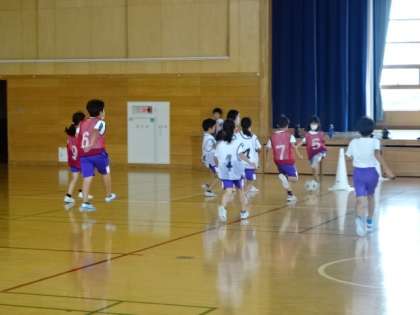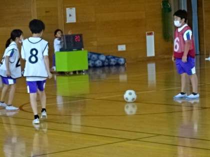 サッカーのゲームです。ここでも、「密」にならないようにした方がうまくいきますね。